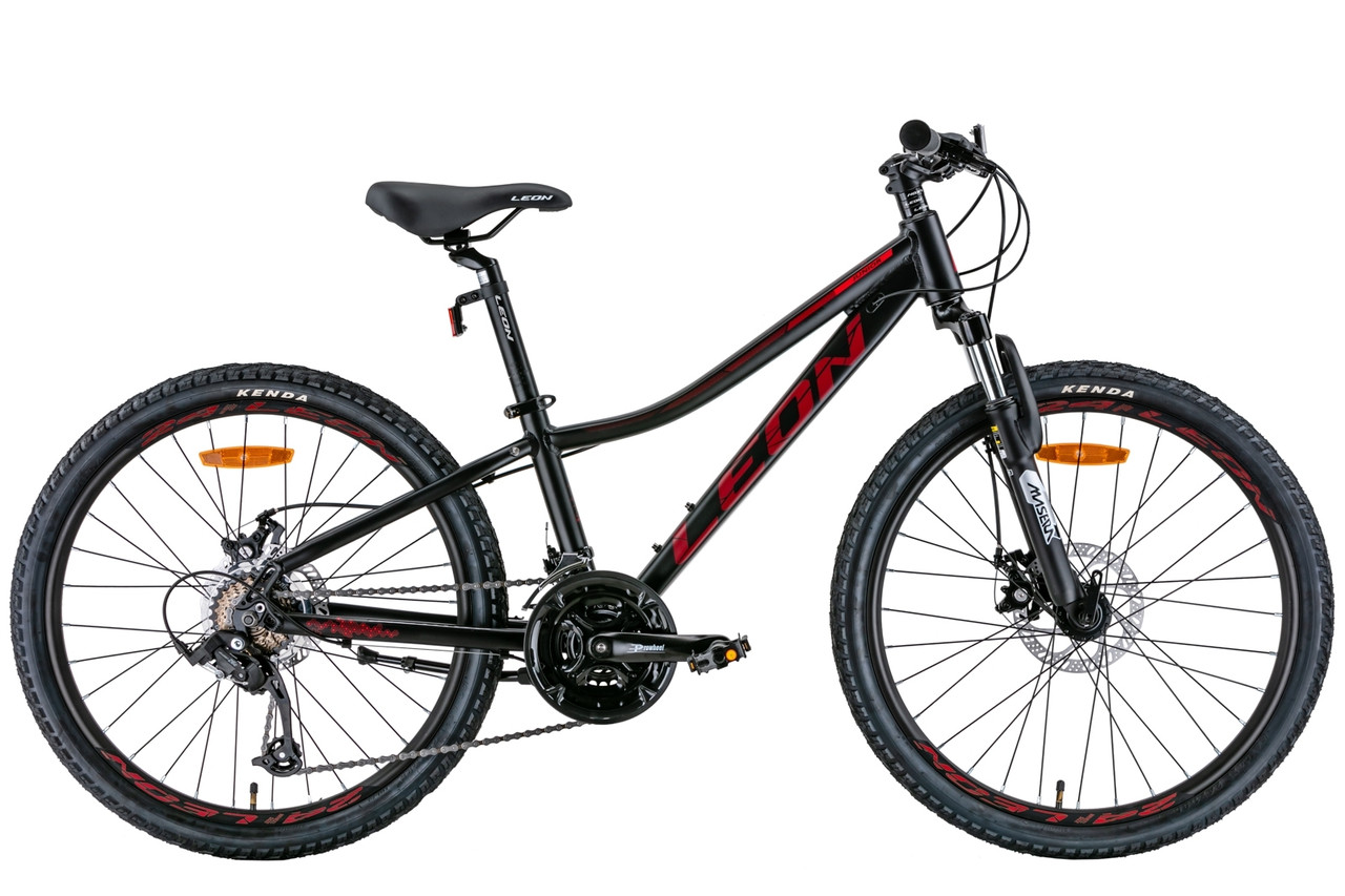 Підлітковий легкий велосипед 21 швидкість на алюмінієвій рамі 24" Leon JUNIOR AM DD 2022, чорний із червоним
