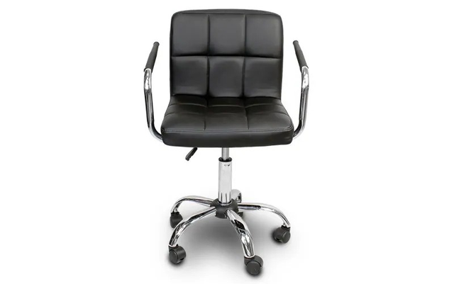 Стильне офісне крісло на колесах Astana чудово підходить для офісу, домашнього кабінету, дитячої кімнати. Сидіння та спинка виготовлені з якісного екошкіри. Металеві підлокітники кріпляться до сидіння, і мають шкіряні чохли. Завдяки пневматичному приводу крісло регулюється по висоті та повертається на 360°. Ніжка із хромованої сталі на 5-зірковій основі з поліуретановими колесами.