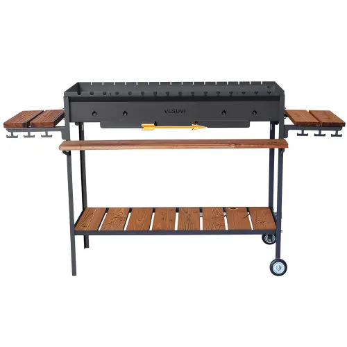 Міцний мангал VESUVI Comfort Wood 1000 з полицями, гачками та на коліщатках, жаровня 1000 мм, до 16 шампурів